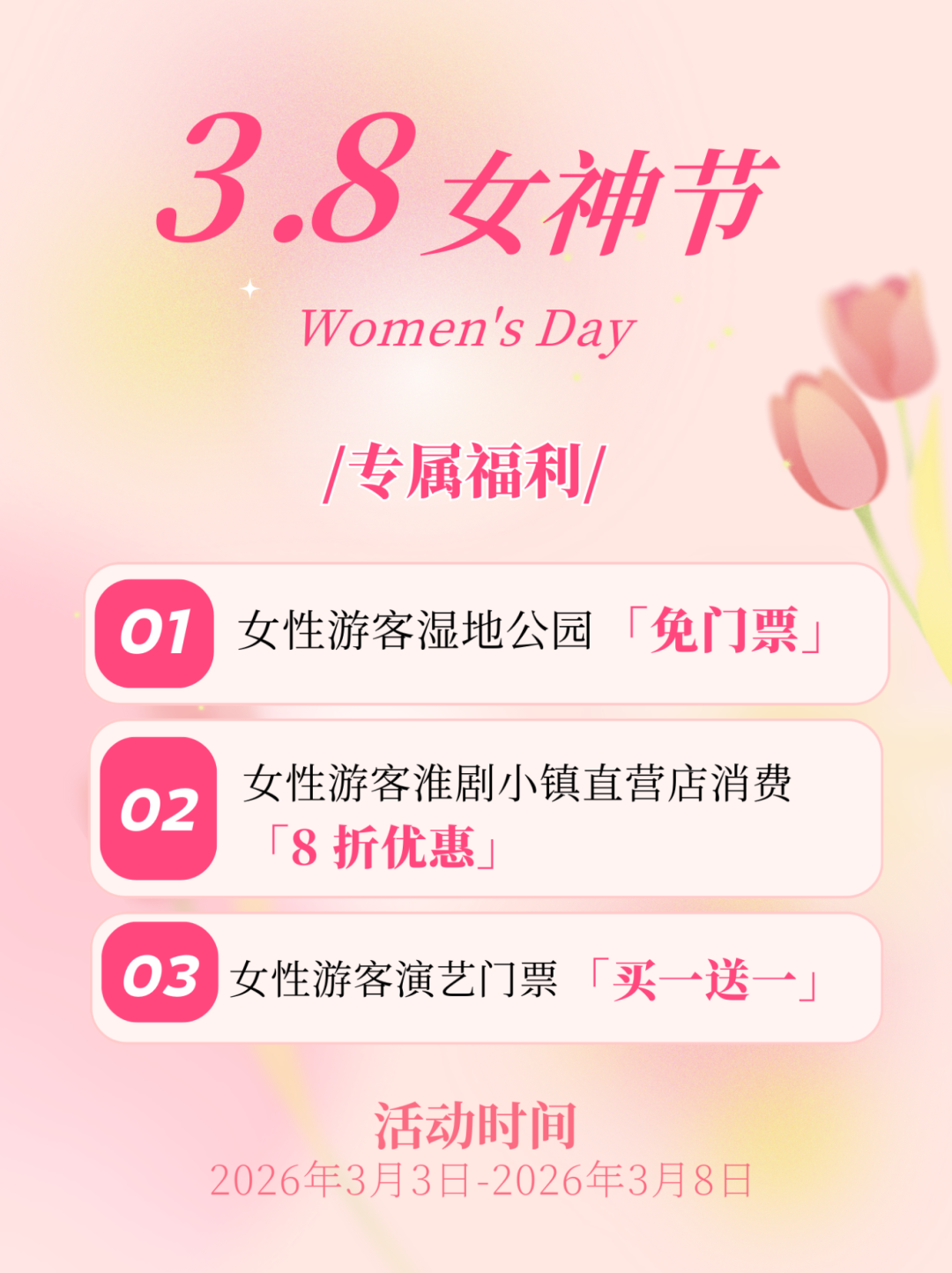 1.3月8日,所有女性游客可免门票入园;