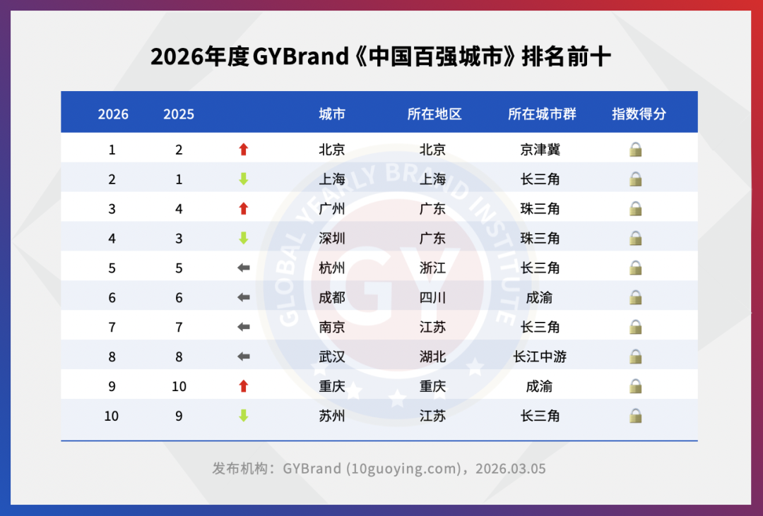 2026年中国城市排名100强名单