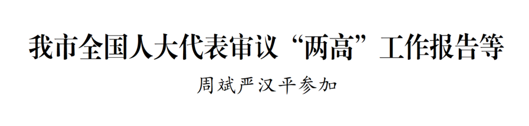 3月10日至11日,十四届全国人大四次会议江苏代表团举行全体会议、小组会议,传达学习习近平总书记重要讲话精神,审议全国人大常委会、最高人民法院和最高人民检察院工作报告等。我市全国人大代表周斌、严汉平、张乃文、戴勇、刘怀平、陈澄、鲁曼、陈宏斌、邵永海参加。