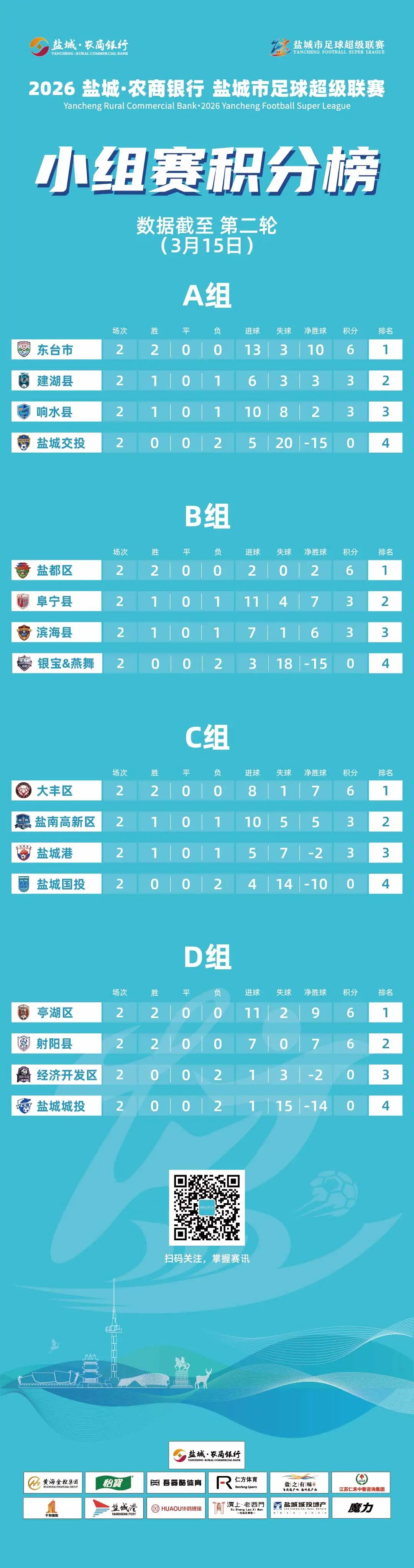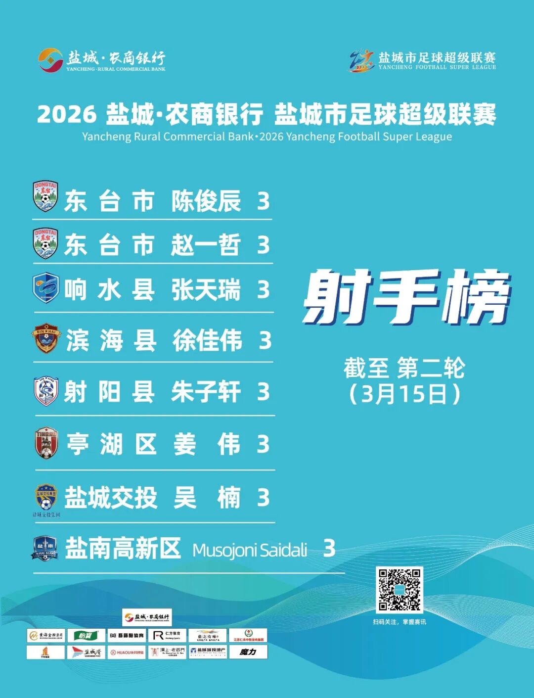 盐城足球超级联赛最新积分榜射手榜(截至3月15日)
