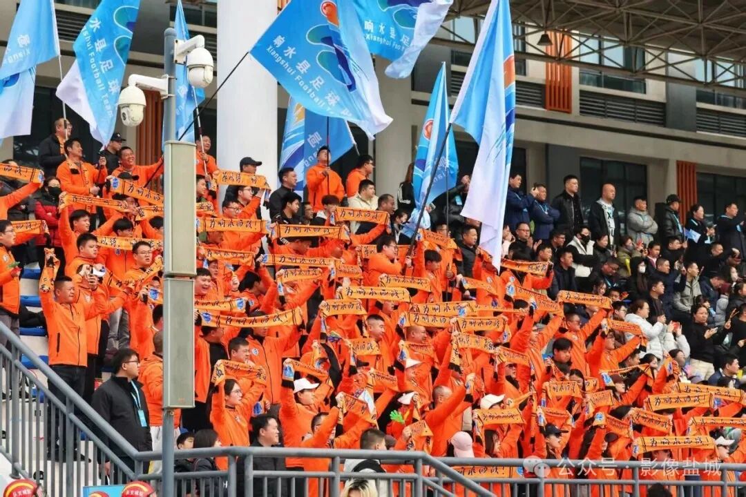 射阳球迷呐喊助威。彭岭摄