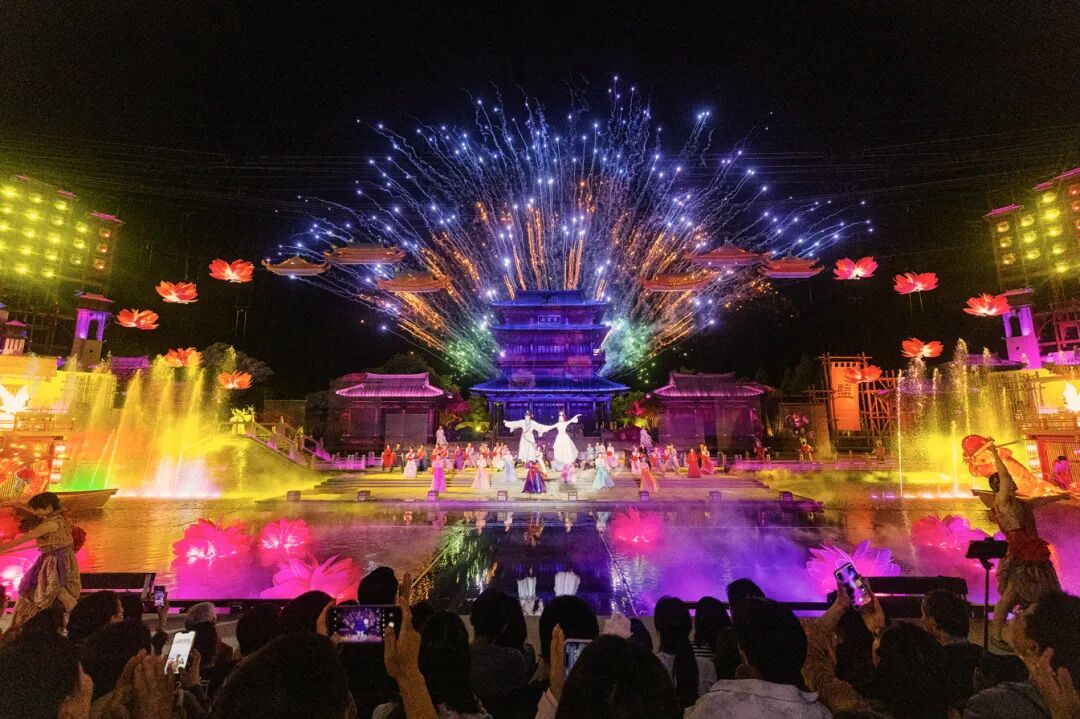 夜幕降临,《天仙缘》在仙幻的光影里拉开大幕。槐树作证,七仙女的故事在水幕与星空间重现,古老传说在实景演出中焕发新的心跳。