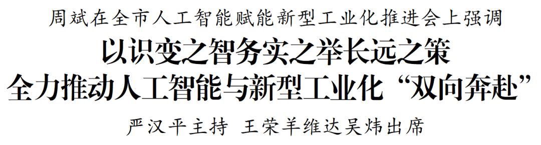 3月18日上午,全市人工智能赋能新型工业化推进会召开。市委书记周斌出席并讲话。他强调,要深入学习贯彻习近平总书记关于人工智能的重要论述和全国两会精神,认真落实国家和省部署要求,深入实施“人工智能+”行动,以识变之智、务实之举、长远之策,全力推动人工智能与新型工业化“双向奔赴”,为谱写“强富美高”新盐城现代化建设新篇章注入新动能。市长严汉平主持。市人大常委会主任王荣、市政协主席羊维达、市委副书记吴炜出席。