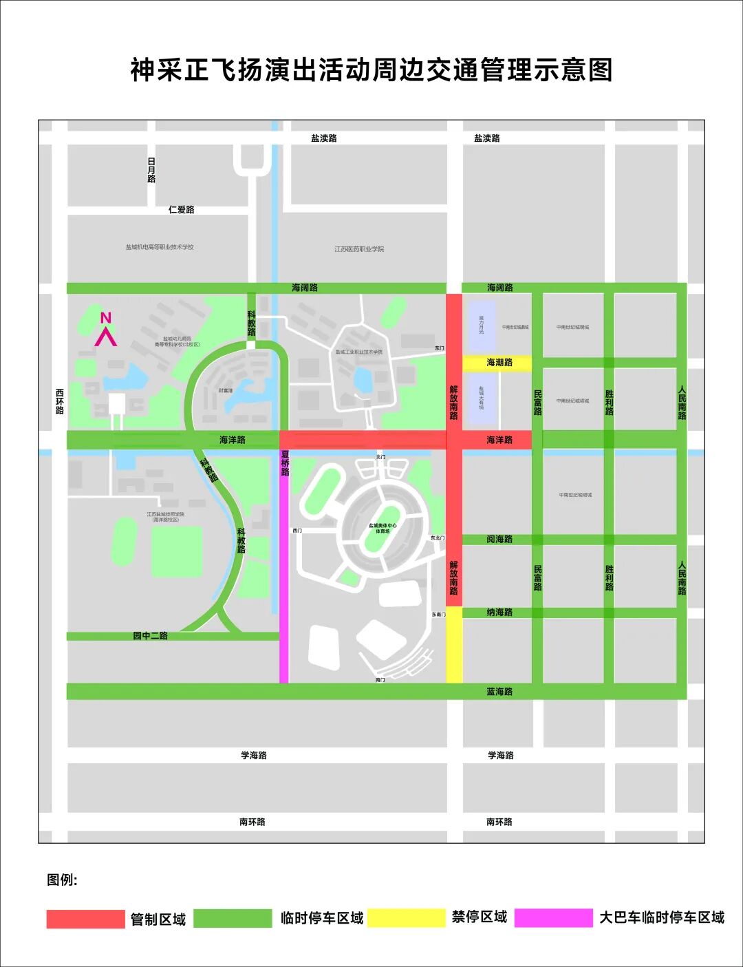 2026年3月20日19时至22时,《神采正飞扬》演出活动将在盐城奥体中心体育场举办,根据《中华人民共和国道路交通安全法》等法律规定,活动期间对盐城奥体中心周边道路实行临时交通管制。现通告如下: