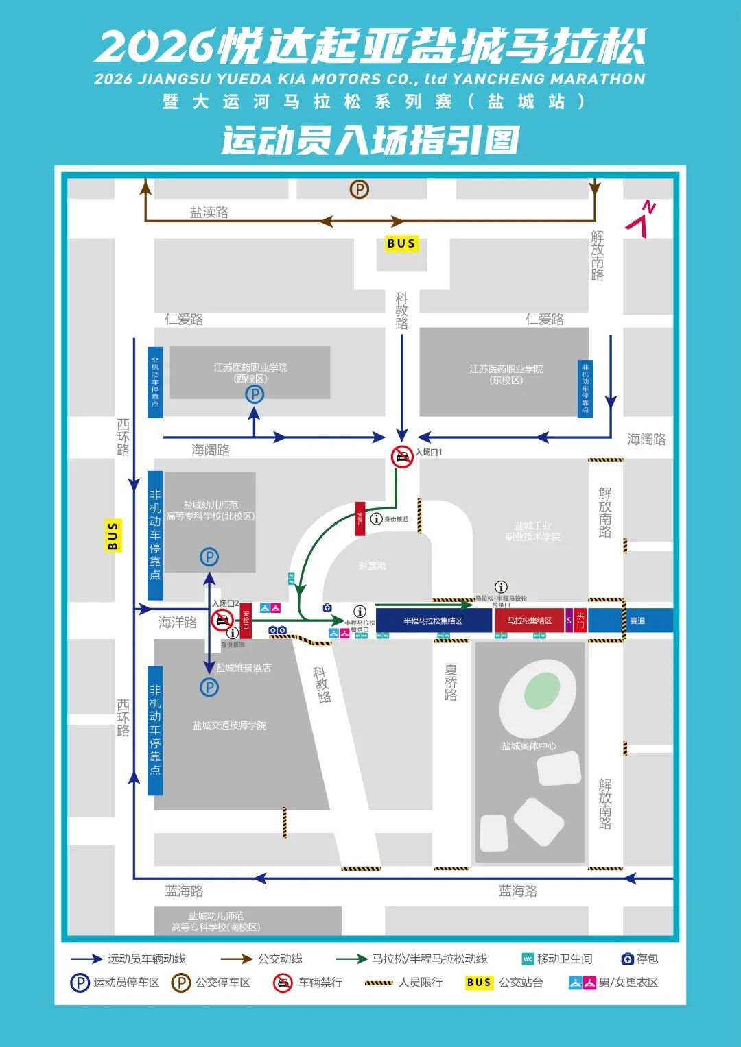 免费凭证:参赛运动员可凭「赛事领物短信或参赛号码布」免费乘坐盐城市市内公交。