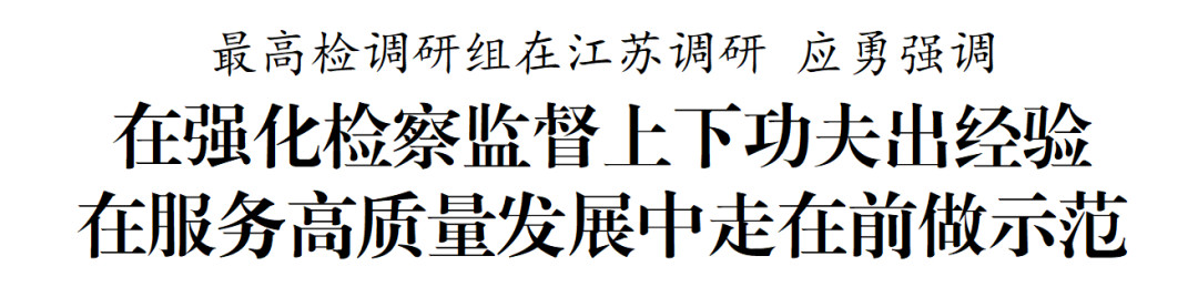 在江苏省检察院,应勇听取全省检察工作汇报,对江苏检察工作给予充分肯定。他强调,要坚持党对检察工作的绝对领导,坚定不移听党话、跟党走,持续擦亮坚定拥护“两个确立”、坚决做到“两个维护”的鲜明政治底色。要聚焦高质量发展首要任务,充分发挥检察职能,协同健全规范涉企执法司法长效机制,助力营造更优法治化营商环境。要准确把握新形势下人民群众对美好生活新期待和民生工作新特点,深化“检护民生”工作,强化民生司法保障。认真贯彻生态环境法典,加强生态环境检察工作,守护好良好生态环境这个最普惠的民生福祉。扎实开展集中化解信访问题专项行动,以底线思维防范化解重点领域风险,维护社会和谐稳定。要认真落实十四届全国人大四次会议关于最高检工作报告的决议,强化检察监督,加强公益诉讼,履行好国家法律监督机关职责,依法监督、敢于监督、善于监督、勇于自我监督,着力提升法律监督的精准度、力度和深度,增强监督实效。积极构建高质效办案制度机制体系,一体抓实“三个管理”,完善检察环节司法公正实现和评价机制。落实和完善司法责任制,强化亲历性司法,走出案卷、走出办公室、走出检察机关,努力做到“三个善于”。要认认真真、扎扎实实开展树立和践行正确政绩观学习教育,牢牢把握“立党为公、为民造福、科学决策、真抓实干”总要求,一体推进学查改,锻造忠诚干净担当的新时代检察铁军。