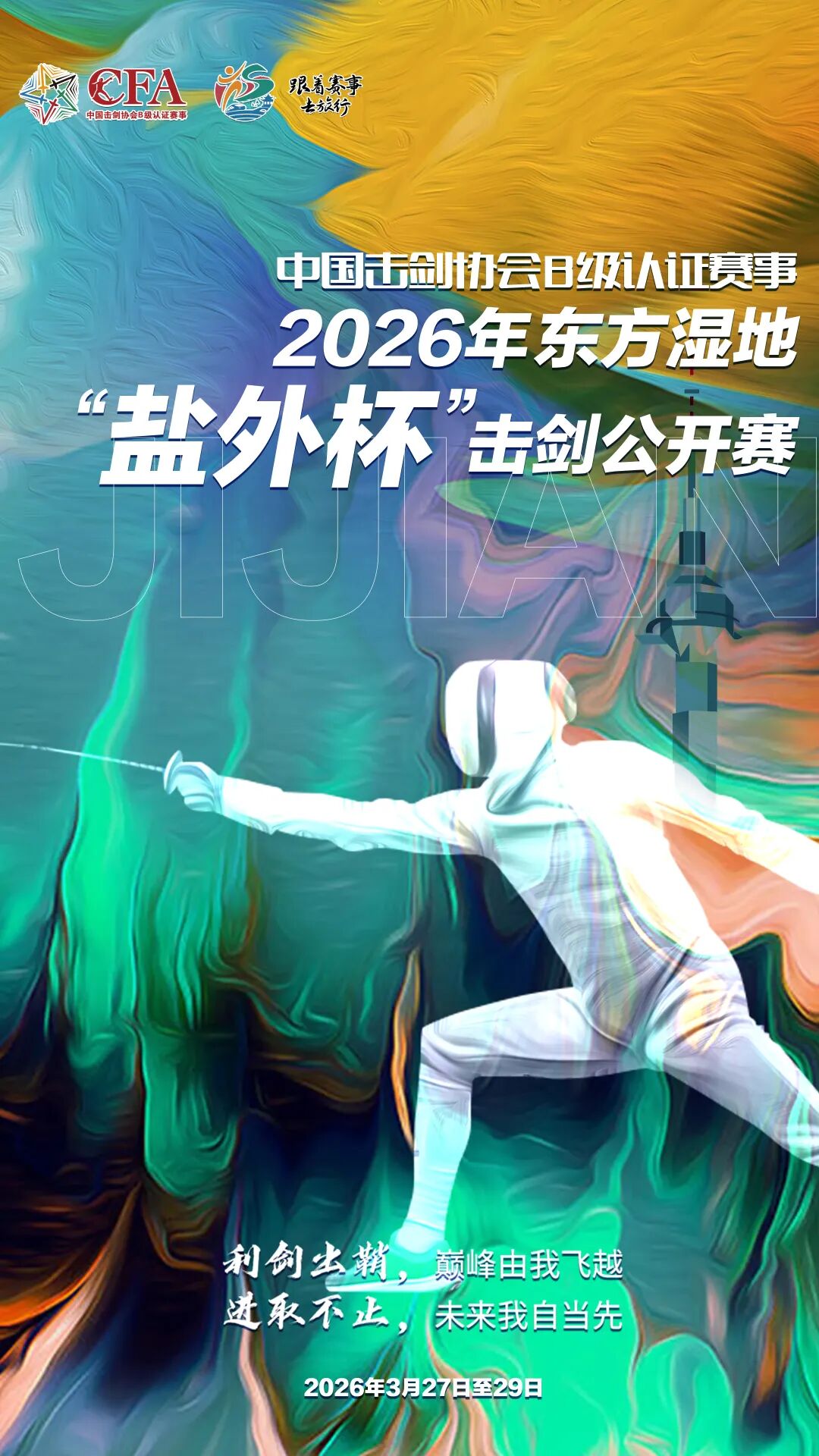 2026年东方湿地“盐外杯”击剑公开赛,经中国击剑协会权威认证,将于3月27日至29日在盐城国际会议展览中心燃情开赛。作为盐城倾力打造的又一全国性高规格体育赛事,届时将有来自全国各地的2000多名剑客齐聚盐城经开区,在剑道之上以剑会友、竞逐锋芒,为观众献上一场兼具优雅与力量的竞技盛宴。