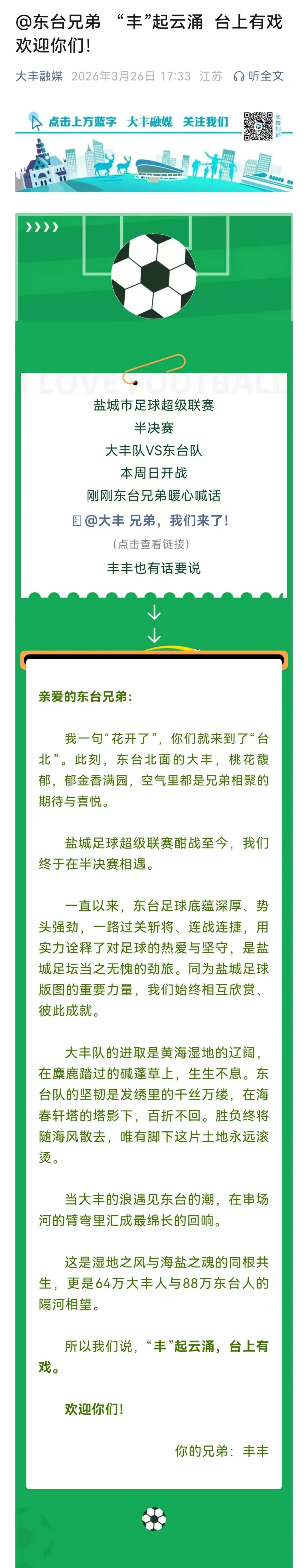 “看2026盐城市足球超级联赛了吗?”
