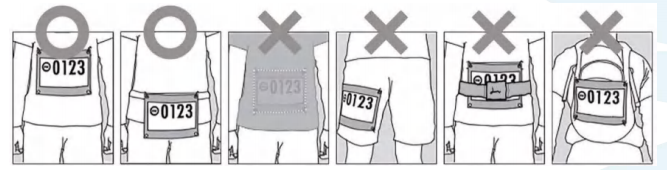 号码布佩戴胸前(请勿折叠或覆盖),如未正确佩戴号码布,裁判或现场工作人员有权拒绝该选手入场。