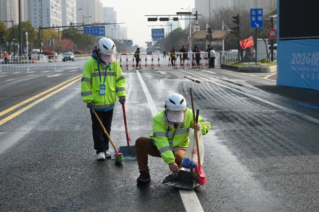 按照“分段解封、逐段清理”预案,以运动员大部队通过为信号,保洁队伍分批次进场,对纸杯、矿泉水瓶等废弃物拉网式清捡,做到“跑者过、垃圾清,赛到哪、洁到哪”,从源头压缩清理时间。