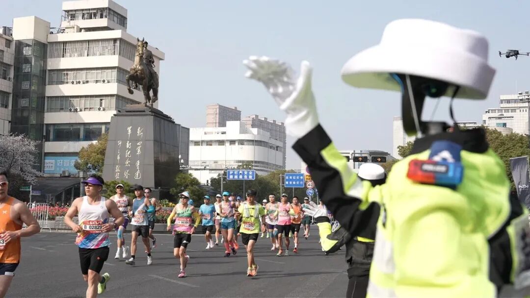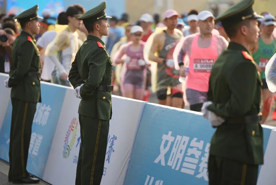 安保人员坚守路口,为跑者保驾护航;医疗工作者和红十字应急救援队严阵以待,守护每一份平安;志愿者、保洁环卫人员贴心服务,成为赛道旁最温暖的风景。