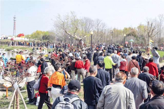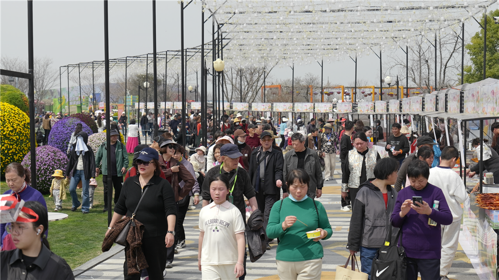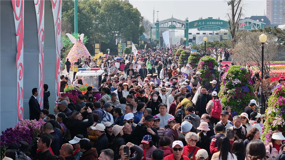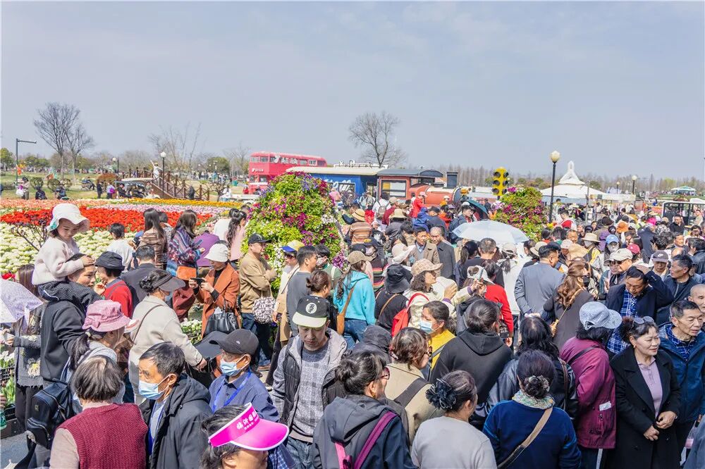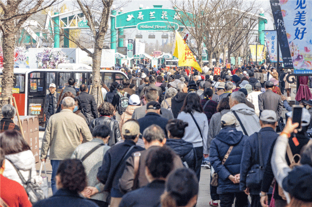 如织人流穿梭于花田间