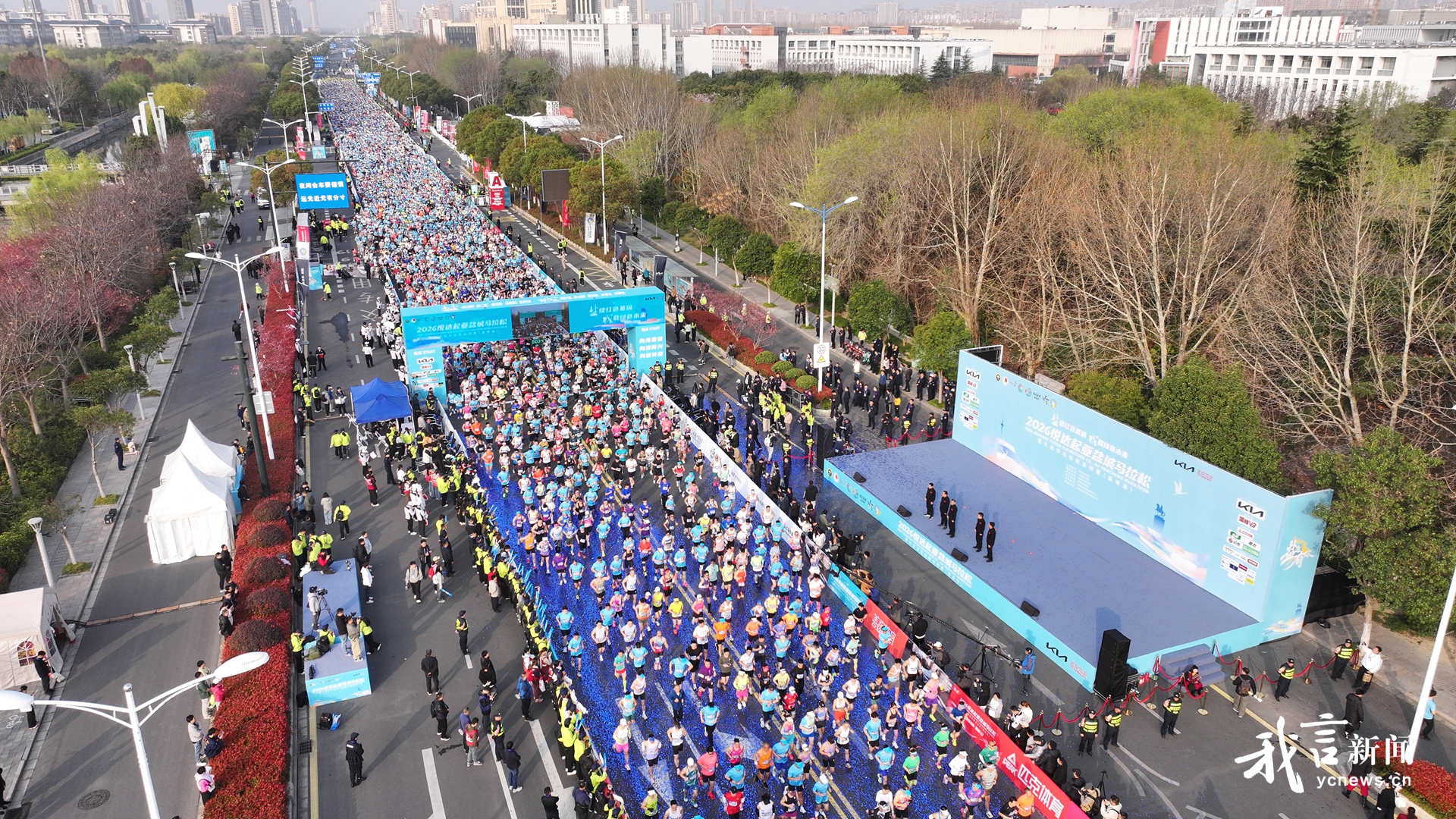 3月29日上午7时30分,2026悦达起亚盐城马拉松暨大运河马拉松系列赛(盐城站)在盐城奥体中心鸣枪开跑。来自海内外的1.5万名选手齐聚盐城,畅跑生态赛道、乐享奔跑激情。