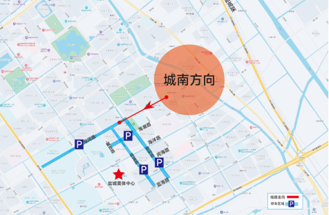 解放路(海阔路至蓝海路)、海洋路(夏桥路至胜利路)、夏桥路(蓝海路至海洋路)严禁停放机动车,观众可将车辆停放至以下临时停车路段: