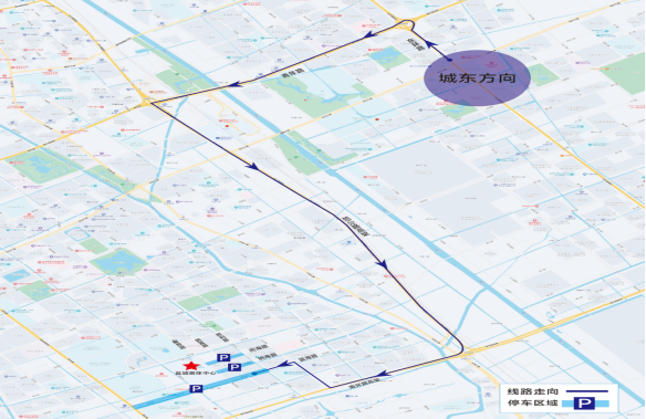 城东方向经东环路高架→青年路高架→范公路高架→南环路高架→人民路→蓝海路→蓝海路(西环路至胜利路)、纳海路(解放路至胜利路)、阅海路(解放路至胜利路)。