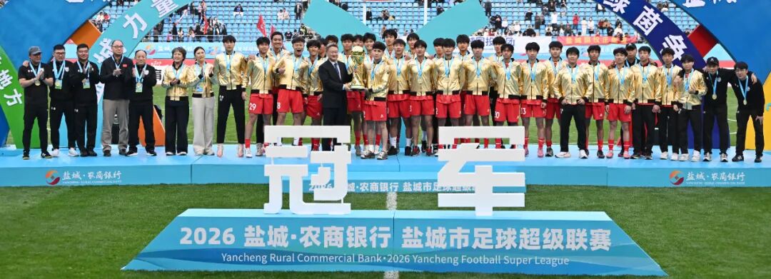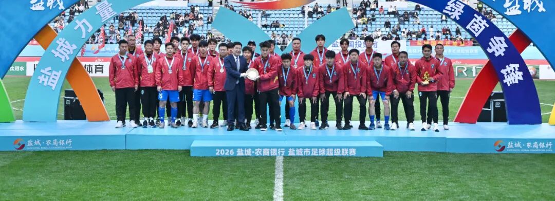 颁奖环节,周斌为东台队球员和教练员颁发金牌和冠军奖杯,严汉平为建湖队球员和教练员颁发银牌和荣誉奖匾。现场还发布了最佳球员阵容,颁发了优秀教练员奖、最佳守门员奖、最佳球员奖、最佳射手奖和优秀裁判员奖、优秀赛区奖。17时23分,在全场观众的欢呼声中,2026年盐城市足球超级联赛圆满收官。