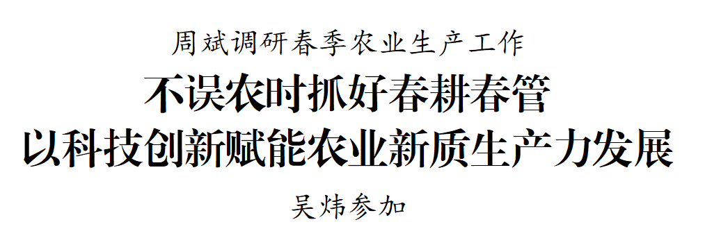 调研中周斌强调,粮食安全是“国之大者”,各地各相关部门要切实提高站位,坚决扛稳粮食安全政治责任,扎实推进高标准农田建设,强化农资保供、技术指导与防灾减灾,确保粮食生产稳定有序。要加快推进科技与农业深度融合,统筹发展科技农业、绿色农业、质量农业、品牌农业,健全联农带农机制,建设宜居宜业和美乡村,奋力推动“十五五”“三农”工作开好局、起好步。