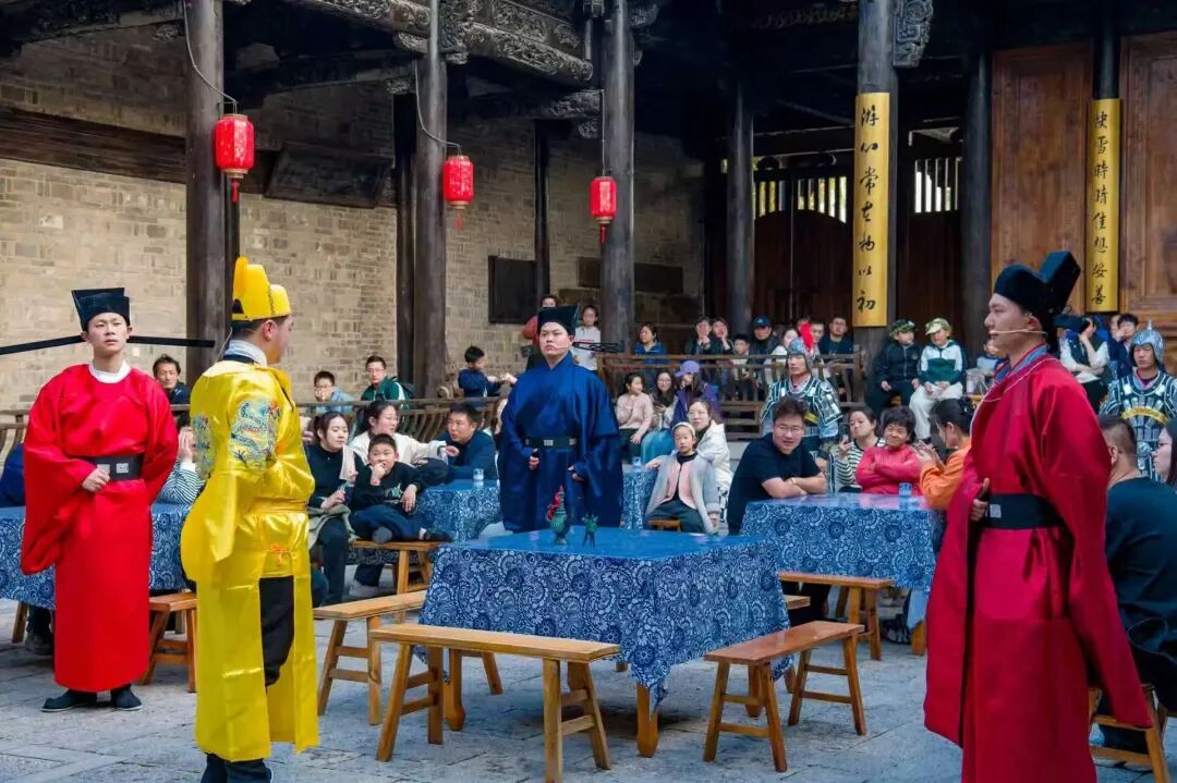文化寻根,寓教于乐。九龙口景区,沙庄戏苑里座无虚席,台上淮剧演员咿呀吟唱,台下叫好声不绝于耳。