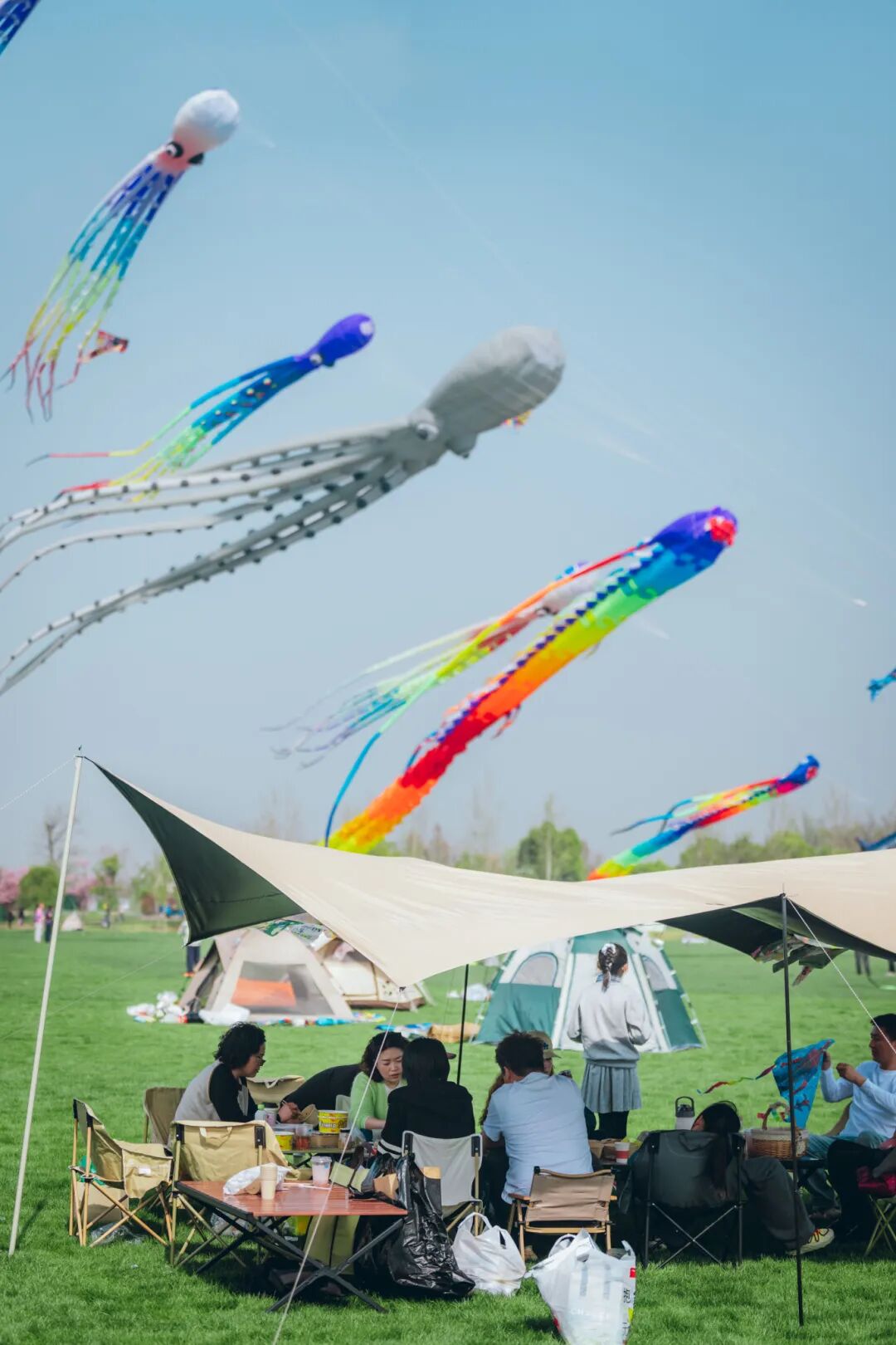 中华海棠园里,海棠开得轰轰烈烈。第六届海棠花开嘉年华火热进行,专业风筝表演团队现场演绎,巨型风筝升空,漫天彩鸢超治愈。草坪上帐篷连成片,烧烤香飘四溢,春日市集一站式搞定风筝周边和特色美食。