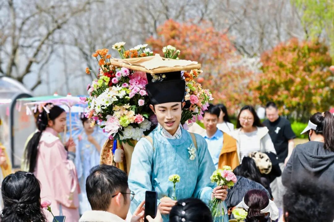国风当潮,古韵新玩。大纵湖景区成了欢乐的海洋,人头攒动,热闹非凡。与“房玄龄”对诗,和簪花少年互动,游客们簇拥在周围,眼神中满是期待。跟着《太平年》畅游大纵湖,巡游队伍浩浩荡荡,花仙子穿梭其间。水上游玩更是点燃了游客热情,在湖荡中尽情驰骋。