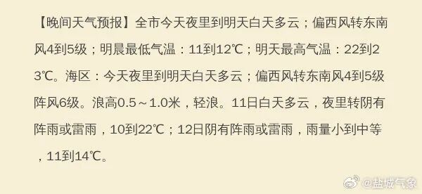 据盐城气象最新预测