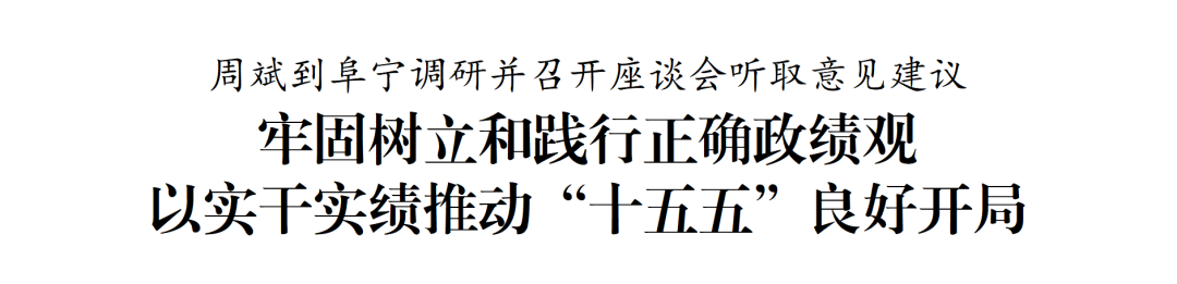 调研期间,周斌分别主持召开座谈会,了解阜宁开展树立和践行正确政绩观学习教育情况,与市直相关部门围绕推进海洋经济高质量发展、促进全体人民共同富裕等领域的新情况、新问题进行系统研究谋划。他强调,要坚持深学细悟、深谋细研、深耕细作,既着眼全局把握发展共性问题,也紧扣盐城禀赋突出个性问题,加强系统思维和协同研究,努力为全国全省发展大局探索路径、积累经验。阜宁县要认真落实“立党为公、为民造福、科学决策、真抓实干”总要求,切实把学习教育成果转化为干事创业实效,确保“十五五”实现良好开局。