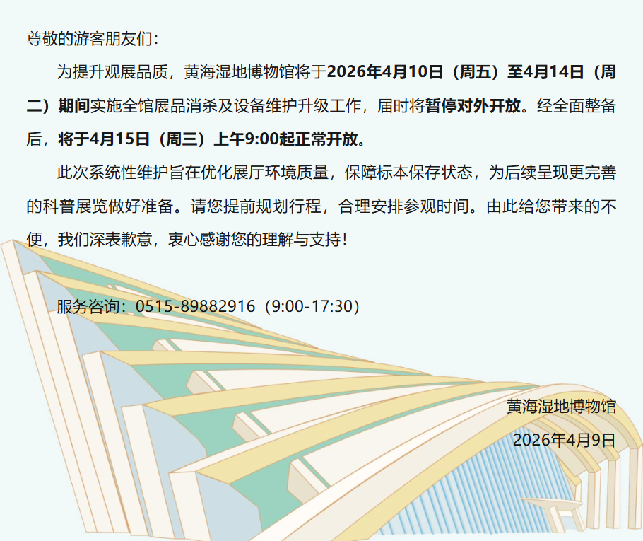 黄海湿地博物馆临时闭馆公告