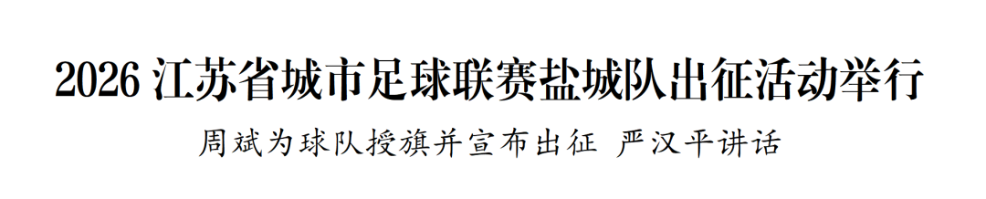 球队的出征,也是城市精神的集结。严汉平向全体参赛人员致以诚挚问候,并回顾了上赛季盐城队的出色表现。他说,新的赛季即将拉开战幕,大家能够代表盐城出征,既是个人荣耀,也是城市荣光。希望大家传承发扬不怕困难、不畏艰险,勇于斗争、敢于胜利的精神,顽强拼搏、永不言弃,赛出铁军铮铮风骨;同心同德、团结协作,赛出团队硬核力量;轻装上阵、文明参赛,赛出城市良好形象;用一场场精彩的比赛回报全市人民的支持与厚爱,用集体的智慧、拼搏的血性书写盐城足球事业发展新篇章。