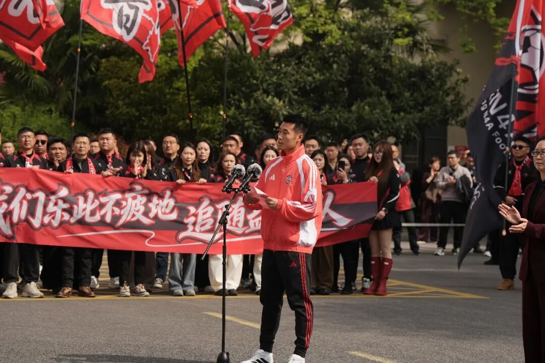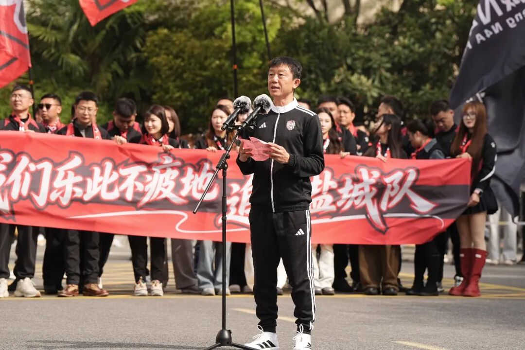在歌曲《我们是“鹿战队”》的激昂旋律中,球队领队郑重接过队旗。鲜艳的旗帜迎风招展,承载着广大球迷的殷切期盼,标志着球队正式踏上新赛季征程。根据赛程安排,盐城队首轮将于4月11日客场挑战连云港队。