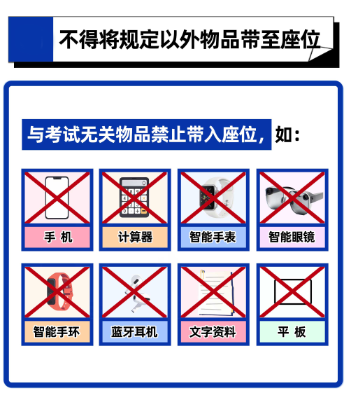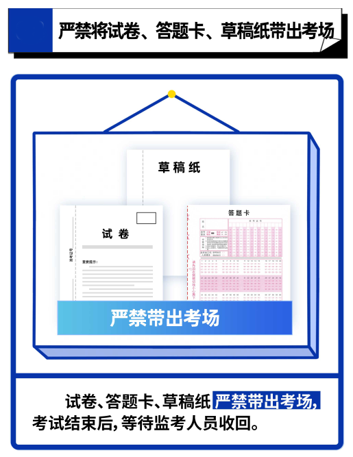 2.因特殊情况未携带规定证件的考生,需先到考务办履行有关手续后方可入场考试。