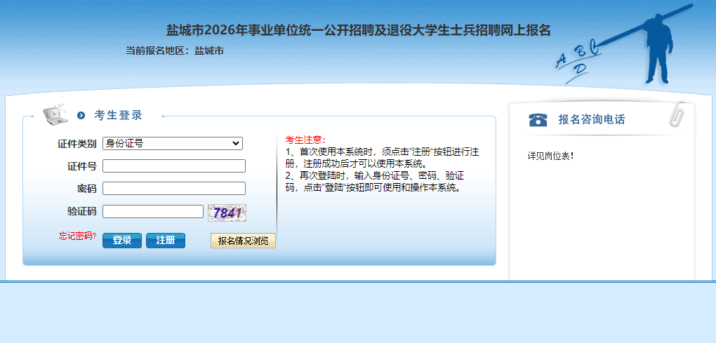根据省统一部署,盐城市2026年事业单位统一公开招聘及退役大学生士兵招聘笔试将于4月18日(星期六)上午举行,有关注意事项请广大考生查阅知晓。