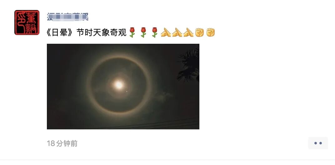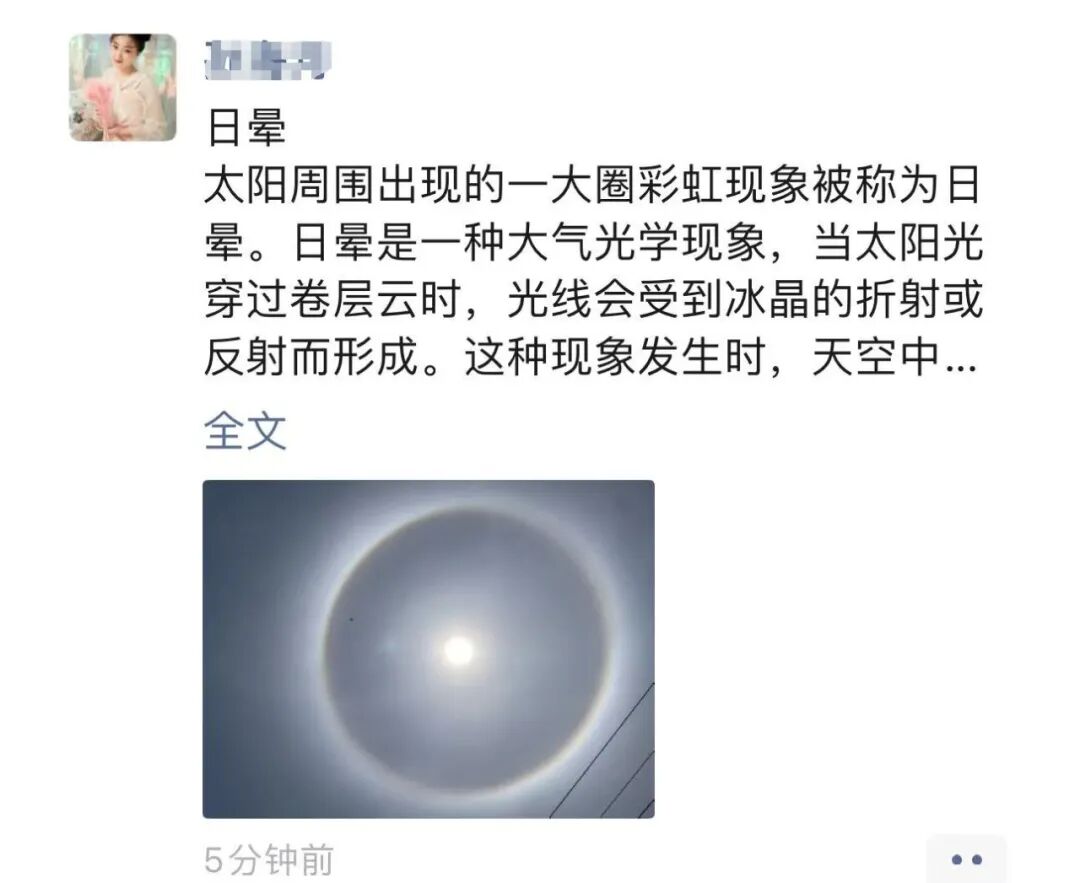 需要注意的是日晕出现时,不要长时间用肉眼观看,以免灼伤眼睛。