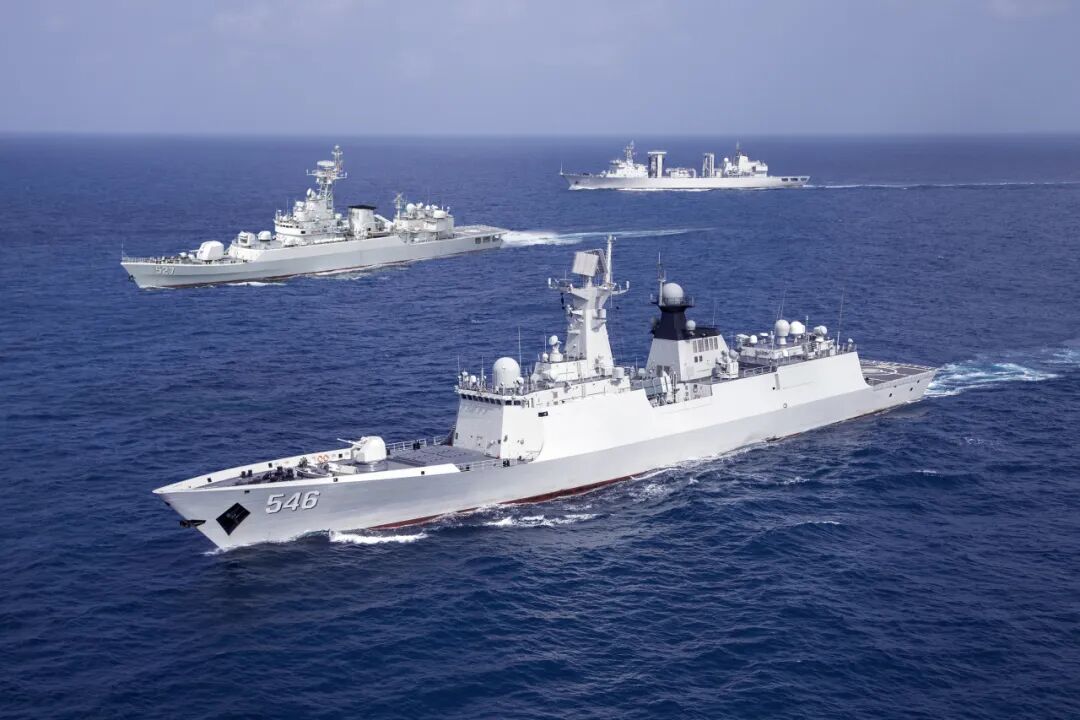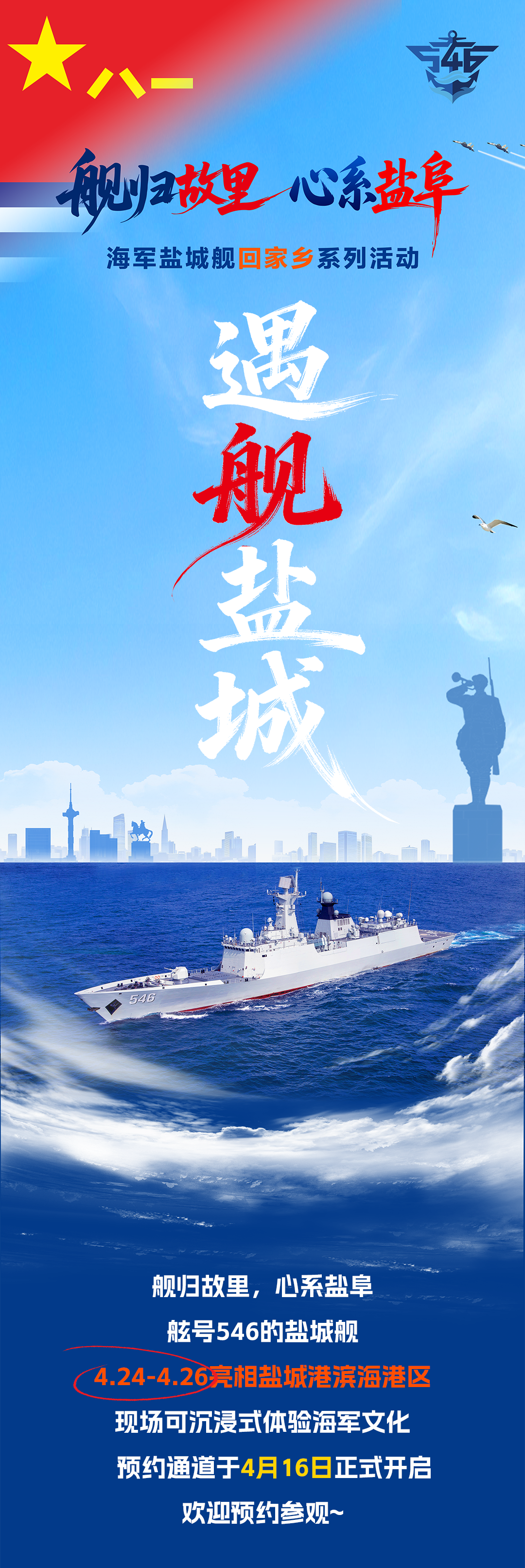 海军盐城舰是我国自行设计建造的054A型导弹护卫舰,舰长130余米,宽10余米,高30余米,满载排水量4000余吨,于2011年4月下水,2012年6月入列服役,舷号546。