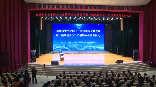 在第十一个全民国家安全教育日到来之际,盐城市中小学同上一堂国家安全教育课暨“鹬鹬说安全”广播剧宣传发布仪式在这里举行。现场展播了《柚子皮头盔》《国旗真漂亮》两集精彩片段,用青少年喜闻乐见的形式,推动国家安全教育“进校园、进课堂、进头脑”。