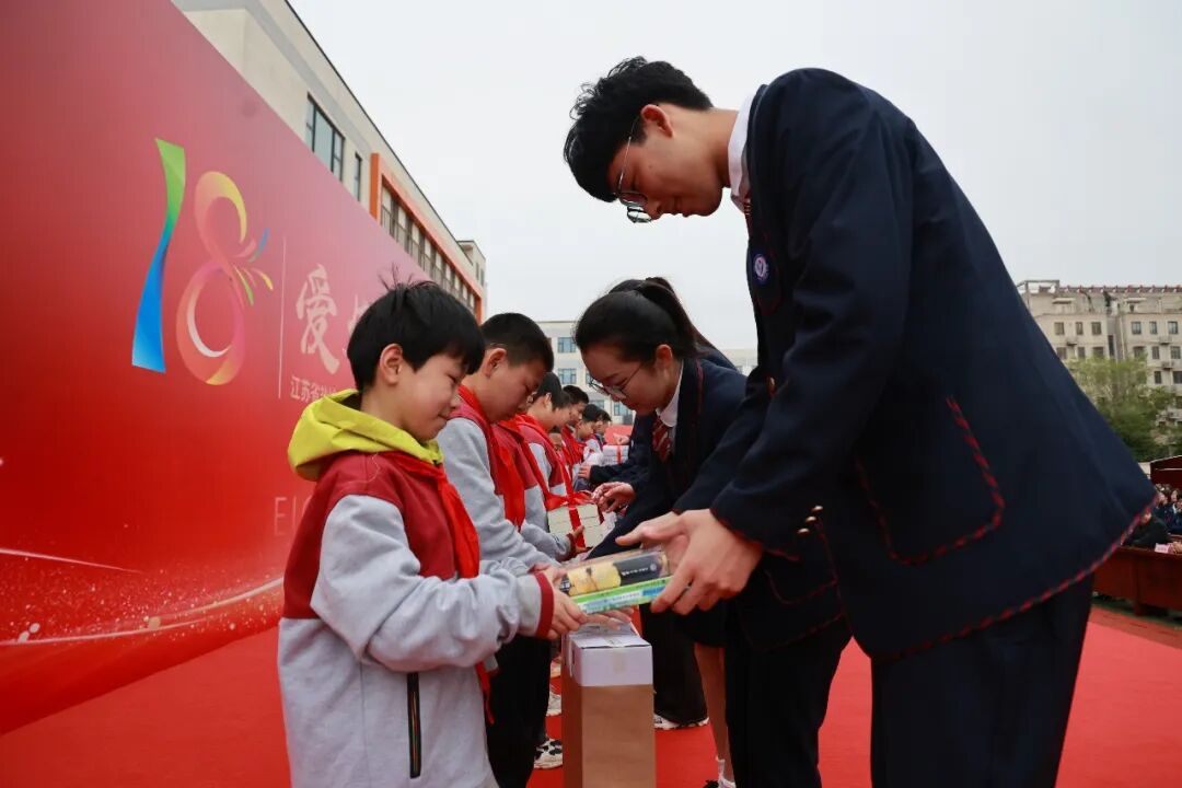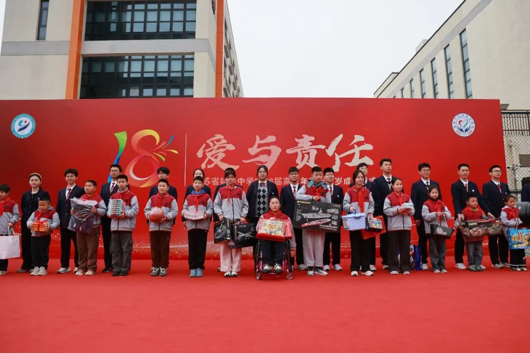 生命因关爱而温暖,青春因奉献而闪光。作为本次成人礼最具温情与社会意义的环节,盐中学子特校行“爱心接力”启动仪式隆重举行。盐城中学与盐城市特殊教育学校领导共同为活动揭牌,定格温暖约定,让爱心生生不息、薪火相传。这不仅是两校共建共育的重要举措,更是盐中将成人教育与社会责任教育紧密结合的创新实践,以爱心传递为纽带,让十八岁的成长第一课充满温暖与力量。此前,盐城中学面向市特殊教育学校学生广泛征集专属“微心愿”,今天,盐中高三学子将每一个心愿都变成承载祝福与爱心的专属礼物,亲手送到特校的孩子们手中。一句句真诚问候、一个个温暖拥抱,让现场洋溢着温情与感动。这份善意,不仅点亮了特校学子的心愿,更让盐中学子在给予与付出中,深刻理解关爱他人、服务社会的内涵。