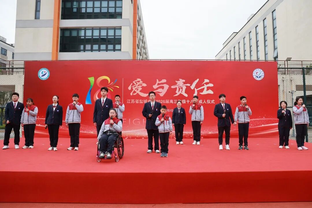“此时此刻,此情此景,我们更应该看到特别的‘他们’:有的听不见世界的声响,有的说不出心中的话语……他们和我们一样,渴望阳光、渴望温暖、渴望被看见。我们选择在市特校举行成人仪式,就是要让同学们明白:成人,从来不是年龄的数字叠加,而是在爱与微光的底色中成长!”4月20日下午,江苏省盐城中学2026届高三年级十八岁成人仪式在盐城市特殊教育学校举行,该校党委书记、校长王乃宁这样对全体高三学子说。