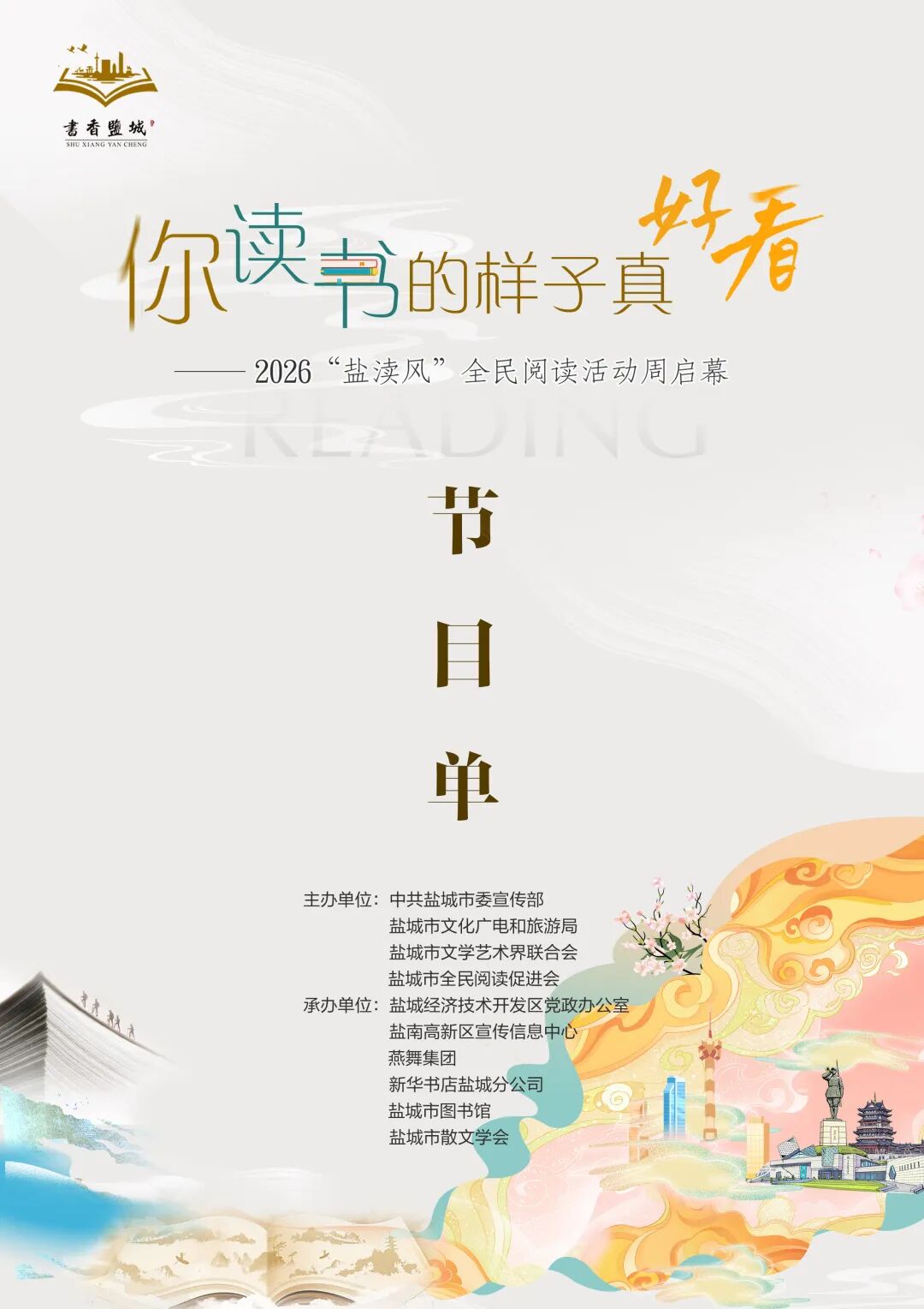 一城文脉藏于纸页,一方水土凝于书香。2026“盐渎风”全民阅读活动周以书为媒,让阅读成为全民自觉、城市风尚,为奋力谱写中国式现代化盐城新篇章注入持久文化力量。
