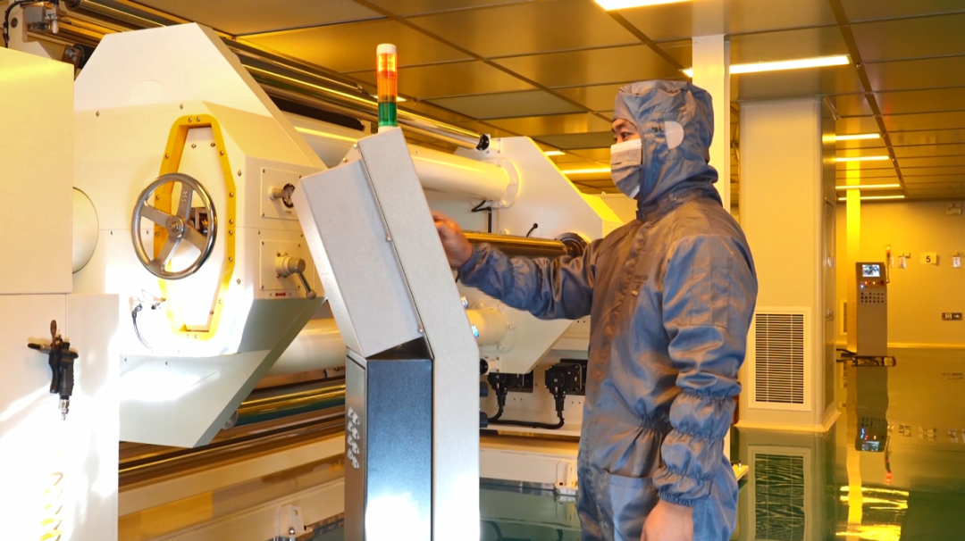 不远处,一期厂房内的光学膜生产线,正在无尘车间内精准运转。“光学膜对车间的洁净度等级要求非常高,我们这里全都是净化千级无尘车间,局部区域达到百级洁净标准。”咸正浩介绍,微结构模具雕刻环境的温湿度控制也极为严苛,温度需恒定在23℃±0.1℃,湿度控制在45%±5%。