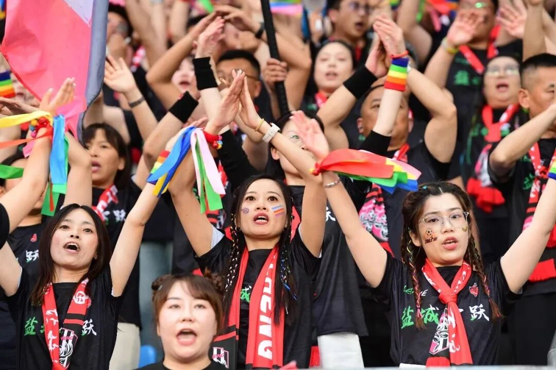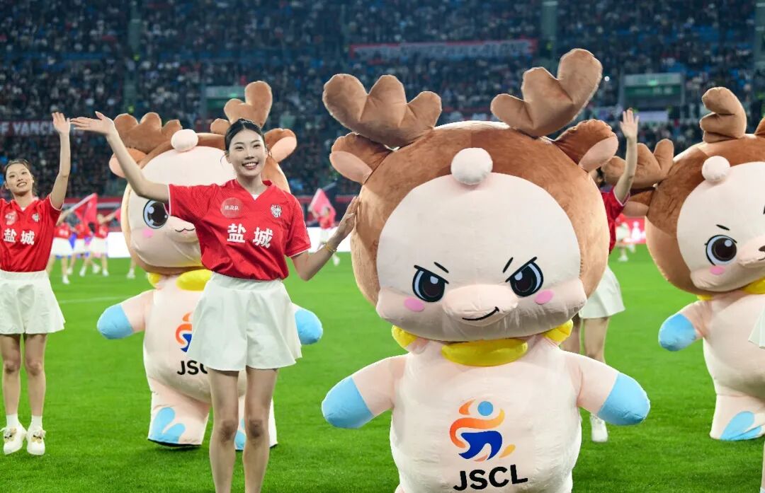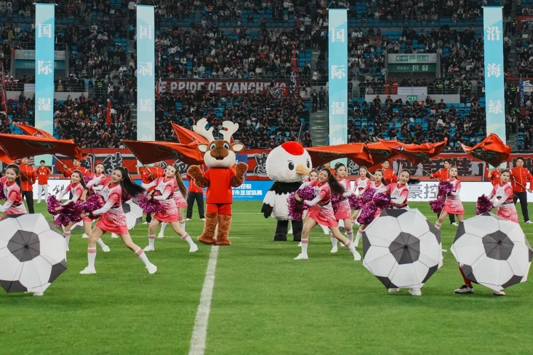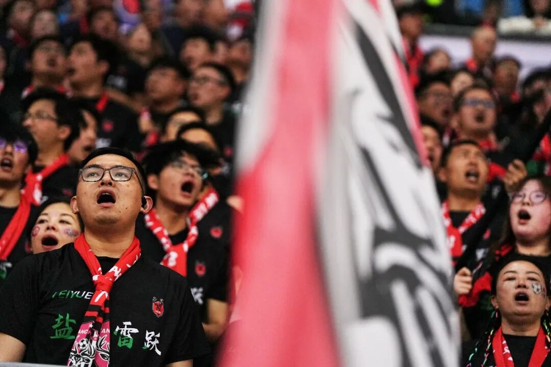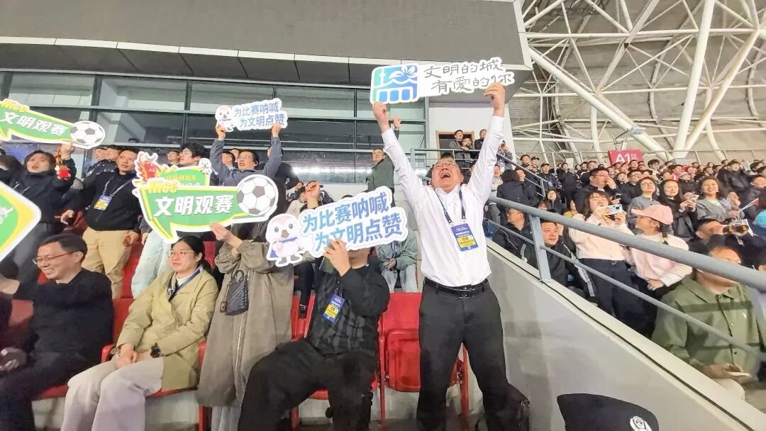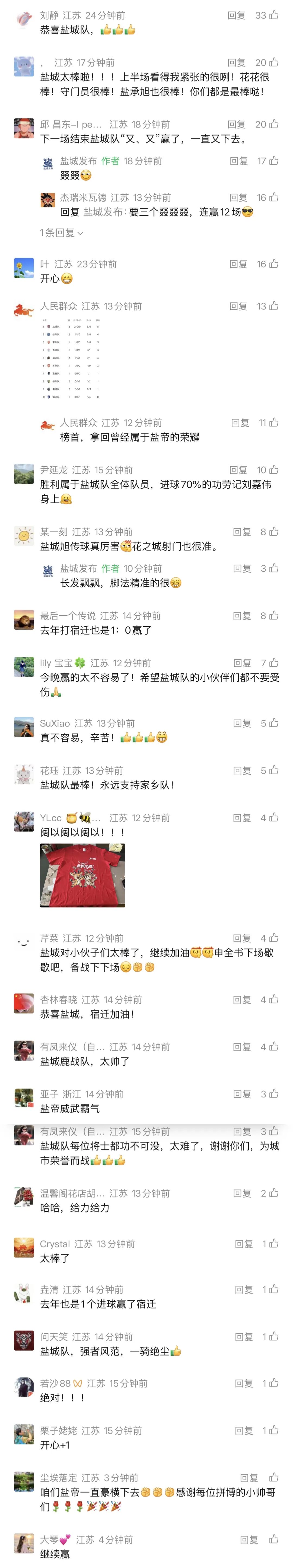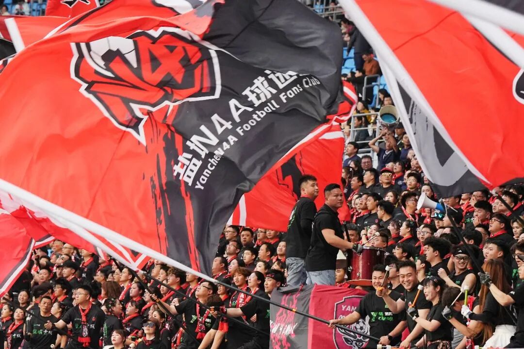 为运动员们加油鼓劲共同见证盐城队主场荣光时刻