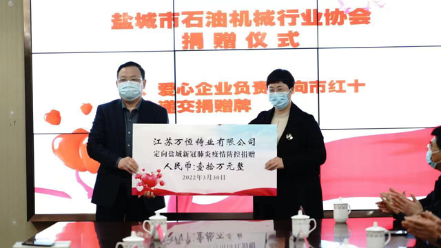 “我们万恒铸业还是一家非常有爱心的企业,积极参与社会各项公益慈善活动。”辛素芳说,公司内部设立困难职工家庭、职工子女上学救助资金,近10年来给予资金帮扶近50万元,为汶川地震、郑州洪灾等捐款捐物60多万元,在新冠肺炎疫情防控期间,万恒铸业主动捐款捐物80多万元,做出了有责任企业应尽的义务。