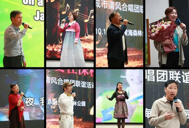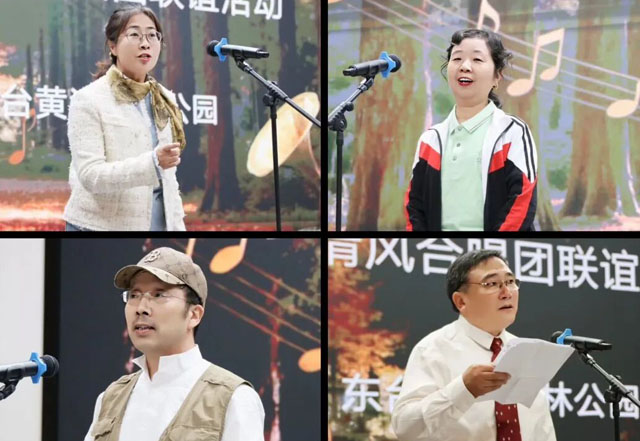 在绿意婆娑、水汽氤氲、负氧离子数高的繁茂森林里,清风团员们快乐徜徉、饱览胜景,敞开心扉、欢笑放歌。大家或行或止、或坐或立,面向碧丛、背倚绿荫,相继演绎了《爱的箴言》《延安是个好地方》等混声合唱歌曲。婉转悠扬的歌声在林中回荡,吸引了过往游客艳羡的目光。