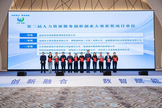 大赛激荡,涌现创新创业“新苗”。第二届盐城市人力资源服务创新创业大赛的成功举办,挖掘和培育了如卯酉臻爱、良才家政、领胜科技等一批代表新业态、新模式的单位创新项目,有效激发了人力资源领域的创新活力,现场为获奖单位颁发了证书。