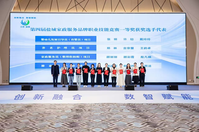 品牌锻造,擦亮“盐城家政”金名片。盐城市大力实施“盐城家政”服务品牌建设,连续四年举办家政服务行业职业技能大赛,以赛促培、以培促建,培养了大批优秀从业者和地标性家政品牌,为“打造长三角地区中高端家政服务品牌”提供了坚实支撑,现场为第四届盐城家政服务品牌职业技能竞赛获奖选手代表颁发获奖证书。同时,举行了长三角部分城市“盐城家政”服务站授牌仪式,为上海、杭州、南京等长三角重点城市设立的一批“盐城家政”服务站授牌,进一步扩大“盐城家政”品牌影响力。
